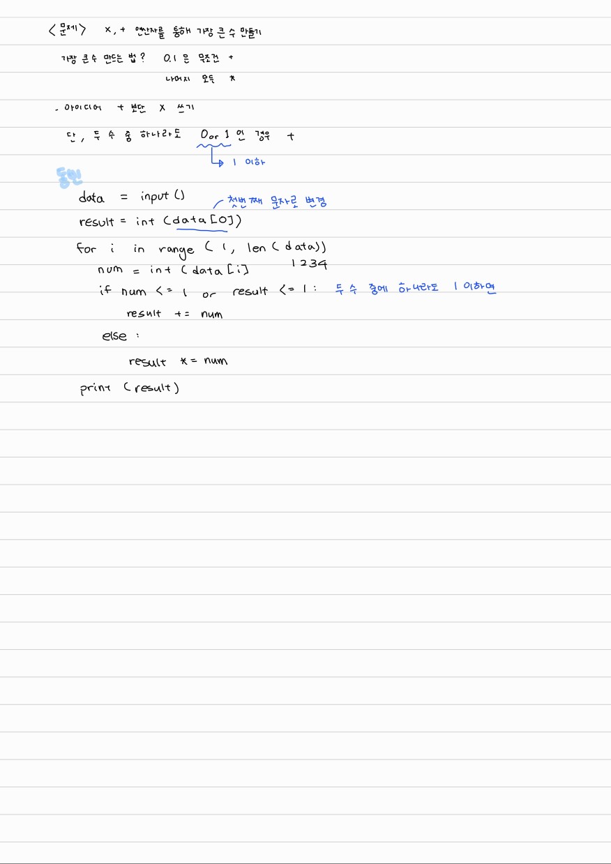 [그리디] 곱하기 혹은 더하기