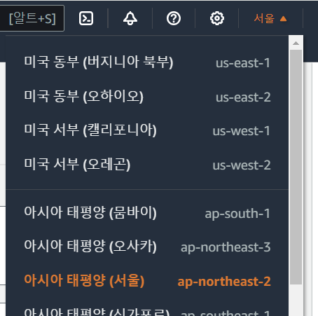 이때 리전은 아시아 서울로 해주세요!