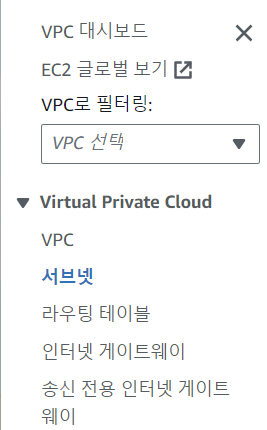 사이드 바에서 서브넷을 찾아 클릭해주세요!