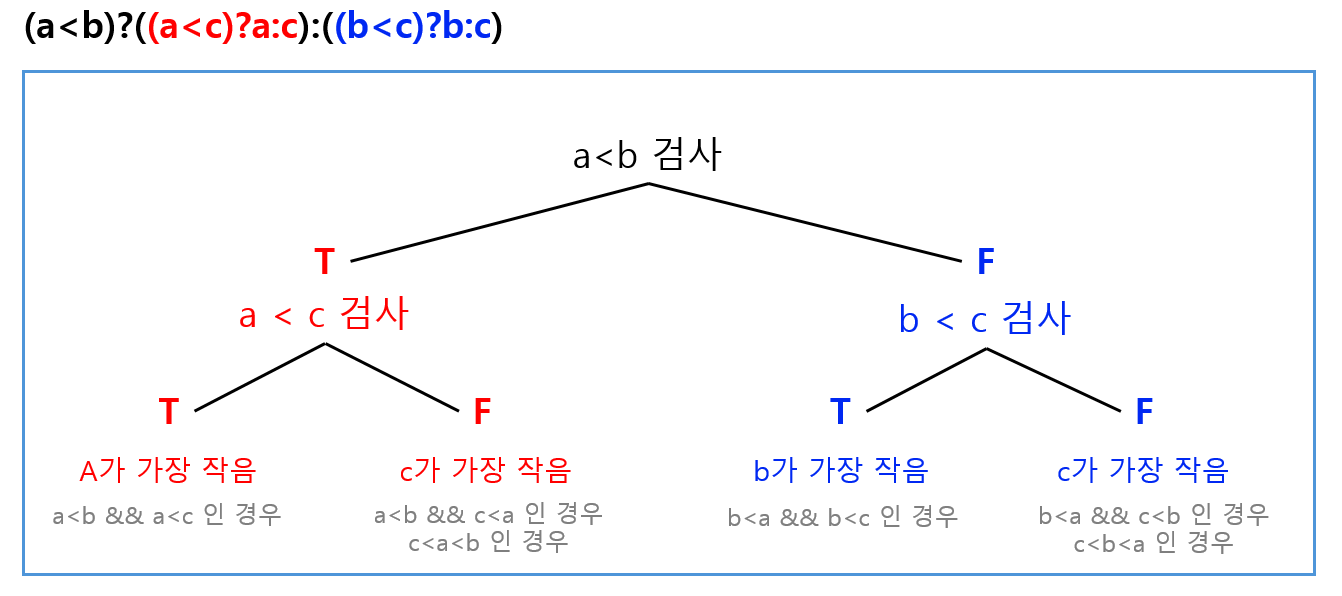 위 그림을 보면 삼항 연산자를 통해 가장 작은 수를 출력하는 방법을 완벽히 이해할 수 있을 거 같다!